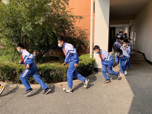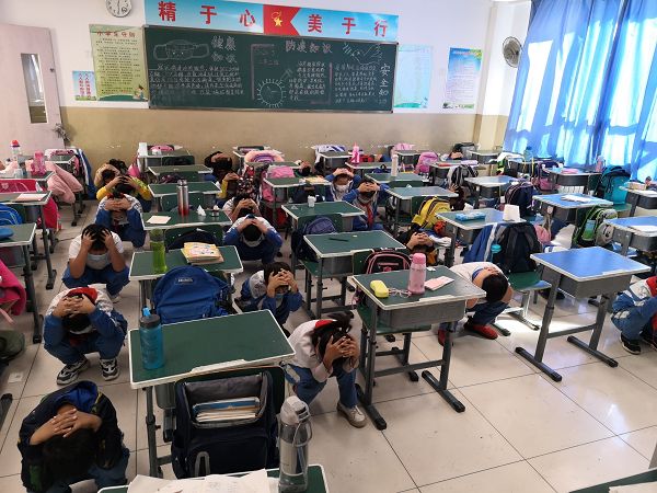 上午大课间时间,响亮且紧张的警报声突然响彻整个校园。随着广播中简短有力的指挥声,全校师生680余人齐动员,学生们在老师的组织下迅速采取了自救措施,纷纷蹲在了桌旁,用胳膊护住头部。当警报声第二次响起时,各班老师迅速指挥本班的学生有序地按照规定逃生路线向操场撤离疏散,到达操场后班主任迅速查对班级人数并及时向总指挥张兰杰校长汇报人数。整个演习过程用时3分25秒,过程安全迅速的顺利完成演练任务,整个过程不仅是因为精心安排的疏散路线,更是因为全校师生的默契配合,使得这次防震疏散演练基本符合要求,无安全故事的发生。